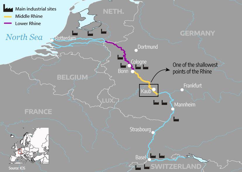 Rhinen, der er en af Europas vigtigste transportvandveje, er hurtigt ved at blive ufremkommelig for pramtrafik. Flere steder på den 1.233 kilometer lange flod er de 110 meter lange flodpramme allerede pålagt at reducere lasten med op til 50 procent for ikke at løbe på grund. En flodpram kan laste op til 2000 ton, og der skal mindst 50 store lastbiler til at erstatte bare én fuldt lastet flodpram.